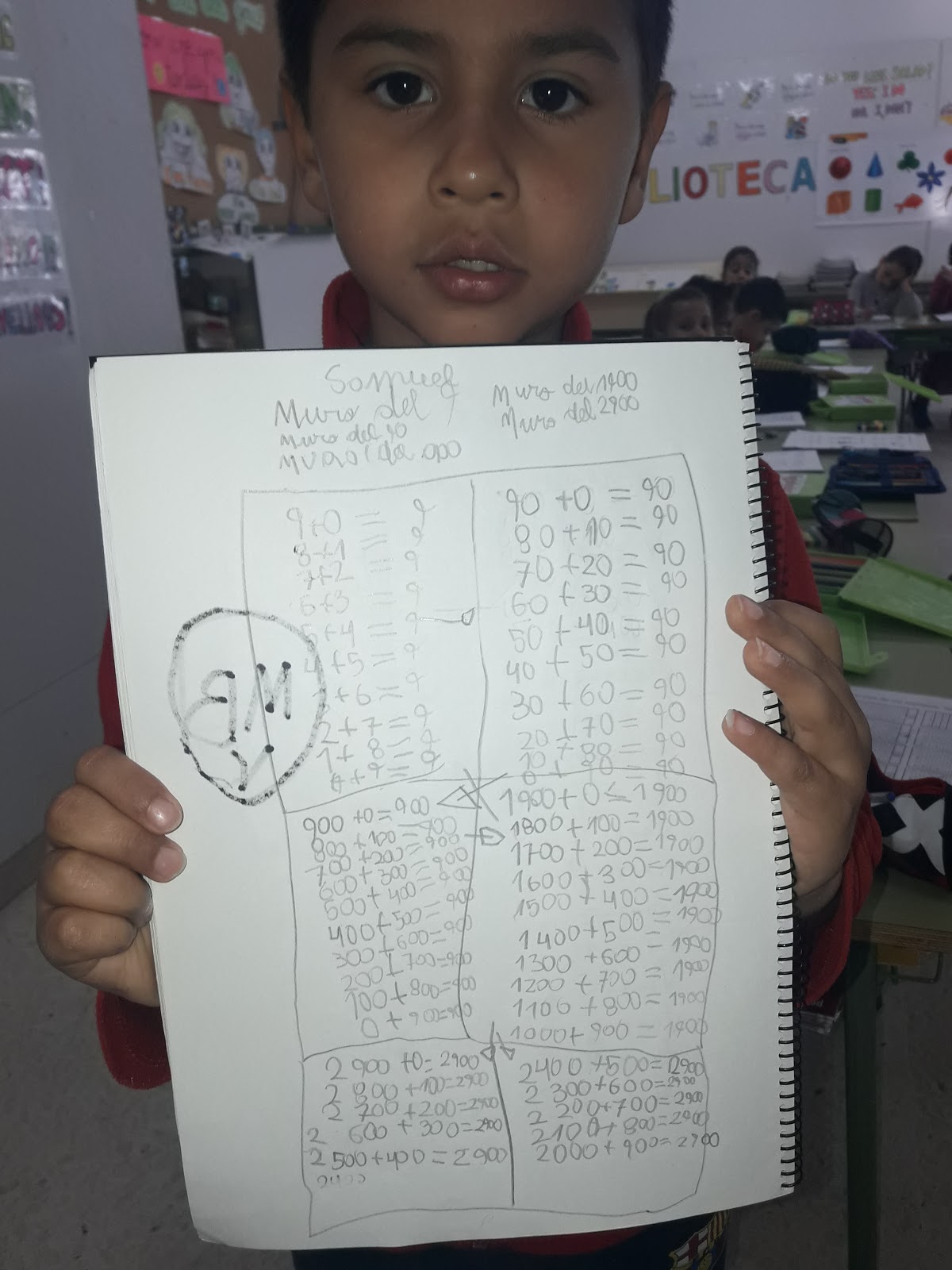 Como se puede observar, las posibilidades son muchas, depende del maestro, las pautas que le de a la hora de construir el muro variarán los conceptos que pueden construir. En ocasiones, son los niños los que te sorprenden deduciendo algún concepto en el que tú no habías pensado, posiblemente porque no consideras que es algo que puedan entender a esta edad, eso es lo que tiene este tipo de enseñanza, que los alumnos te sorprenden día a día. Un ejemplo de ello está en el siguiente vídeo, es de unos alumnos de primero de primaria, del mes de enero, y trabajamos conceptos relacionados con la multiplicación, era día 30 y pudieron ver, que 30 puede ser 4 x 7 +2